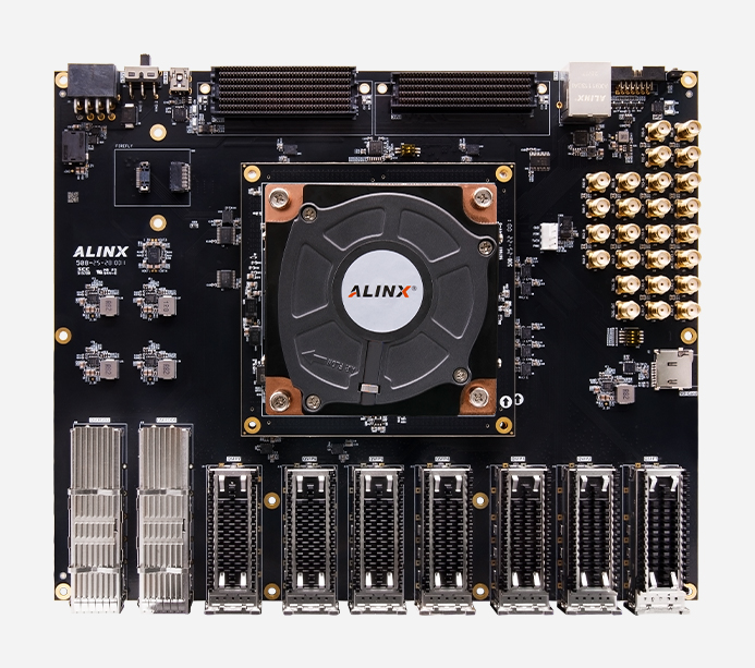 AXVU13G 开发板提供了丰富的高速网络接口(QSFP-DD/QSFP28)、扩展接口(FMC+/FMC)和调试接口(UART/JTAG)