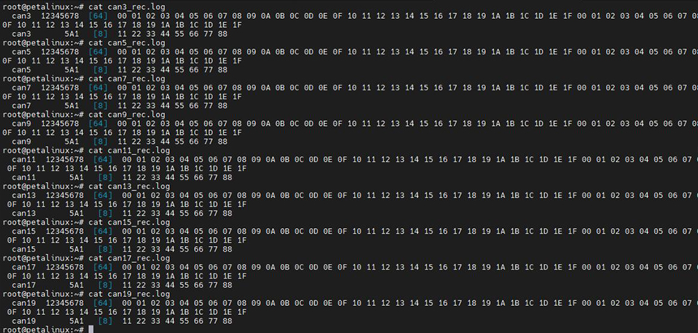 先使能互相连接的两路 can,然后一个发送数据,另一个接收数据并保存下来, 查看保存的文件数据是否正确来验证 can 收发是否正常