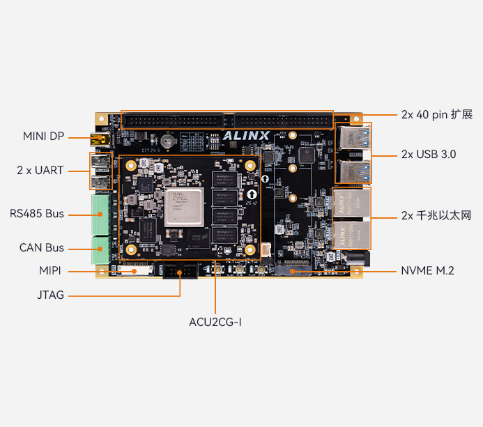 1 个 MIPI 摄像头接口,连接 ALINX MIPI 接口 OV5640 摄像头