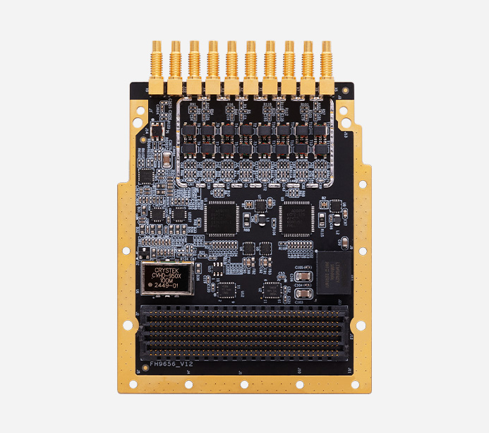 ¥30000.00FH9656 是一款 8 通道 125MHz 采样率 16 位 AD 采集 FMC 子卡,符合 VITA57.1 规范,可以作为一个理想的 IO 模块耦合至 FPGA 前端,8 通道 AD 通过高带宽的 FMC 连接器(HPC)连接至 FPGA 从而大大降低了系统信号延迟。